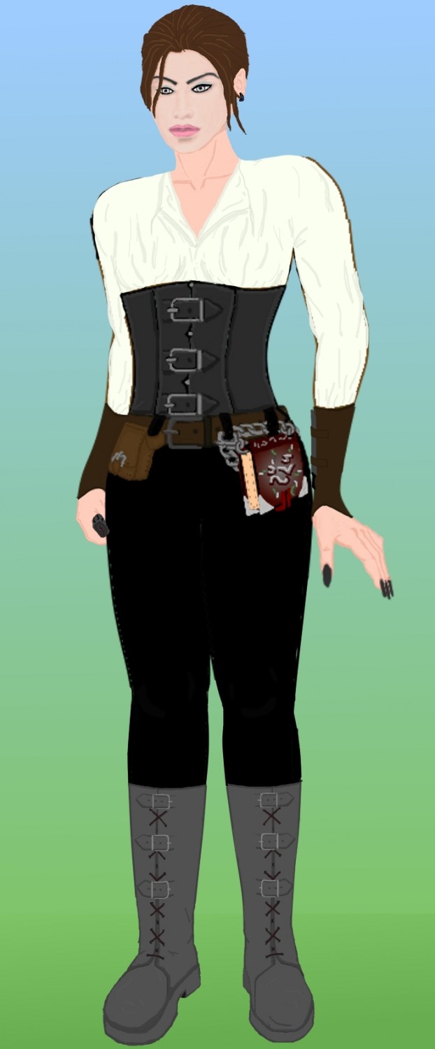 8.Внешность: Невысокая(163см) молодая девушка в теле, с блеклыми бледно-серыми глазами, и длинными до поясницы русыми волосами, собранными в хвост или косу и скрученными на макушке. Не имеет физических дефектов. При мимолетном взгляде на лицо может показаться, что она устала от всего безобразия вокруг и готова убить первого подошедшего. Предпочитает одежду немарких цветов, удобную высокую обувь, рубашку под корсет, штаны и темно-коричневый плащ с капюшоном. Раздражается, когда вещи цепляются, за что бы то ни было, и когда их надо надевать слишком много. Поэтому никаких лишних рюшечек, подолов, и холодных краев без нужды. Ведет себя непринужденно, но осторожно.