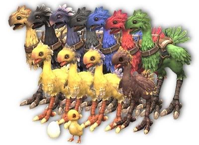 | 1. Название - Чокобо 2. Можно и купить, и поймать. 3. Разновидности: А) Обычный чокобо (можно купить за 75 медных) Всеядны Цвет можно менять с помощью специальных красок (обычные - 25 медных, более редкие (фиолетовый, белый, голубой) - 40)